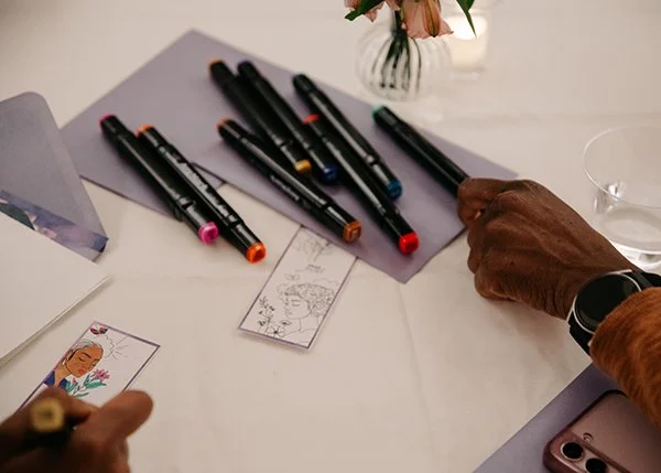 After listening to the authors, we sat at beautifully set tables to mingle. I met someone new and we talked about our work and our pursuits of rest. I genuinely felt joy learning about her work and what she found useful in her own journey. She shared about her need to get a full night of sleep and I thought about my own practice of sleep. I realized that for me, it was a thing I did as needed but not as rest. And eight hours of sleep, delicious as it might be, did not equal rest in my day. It was a sobering realization. Not earth shattering, maybe not even new. But I needed to acknowledge it because it revealed to me a way in which I was not fully caring for myself. We talked while coloring illustrations on bookmarks provided for the event. I acknowledged that had I not come out that night, I would have been busy working on something and trying to get it done in time to get some good sleep. Instead, I was engaging with other Black women, laughing, coloring, and exchanging stories.